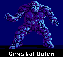 The Crystal Golem (also referred to as a stone golem) is a guardian that lives in Kylearan's Tower. According to decorative inscriptions in the tower's walls1, "as a guardian he must walk" and it is "made of earth, yet without soul, as living stone, he is whole."